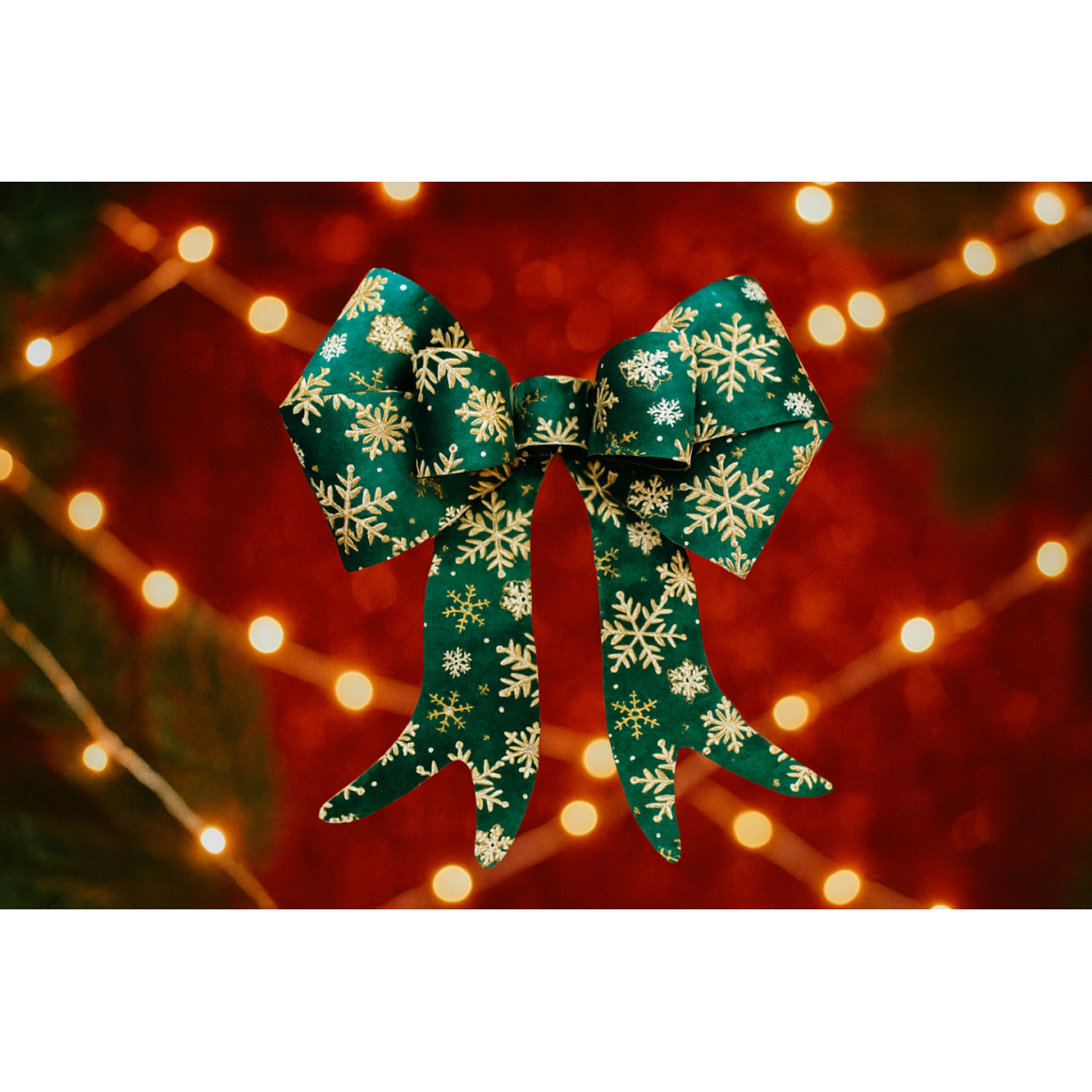 Com uma linda estampa de flocos de neve dourados e brancos, ele traz elegância e brilho para árvores, guirlandas, portas, janelas, presentes e arranjos festivos.