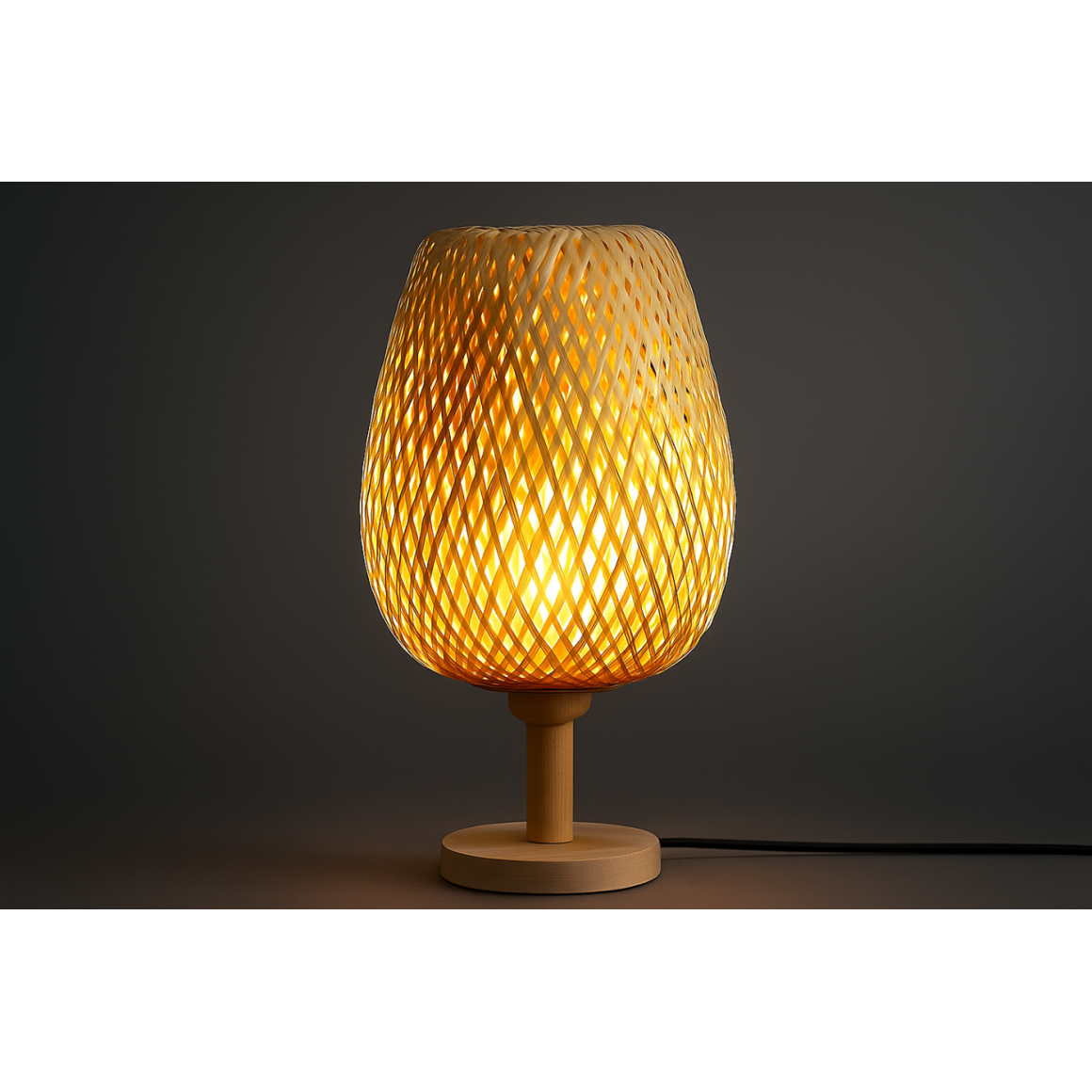 Seu design artesanal une o charme do linho trançado com a base de madeira natural, criando uma iluminação suave e acolhedora ideal para salas, quartos, escritórios ou áreas de descanso.