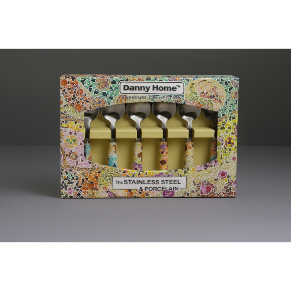 Adicione um toque de sofisticação e cor à sua mesa com o Jogo de Colheres de Inox com Cabo de Cerâmica – 6 Peças Danny Home Premium Collection.