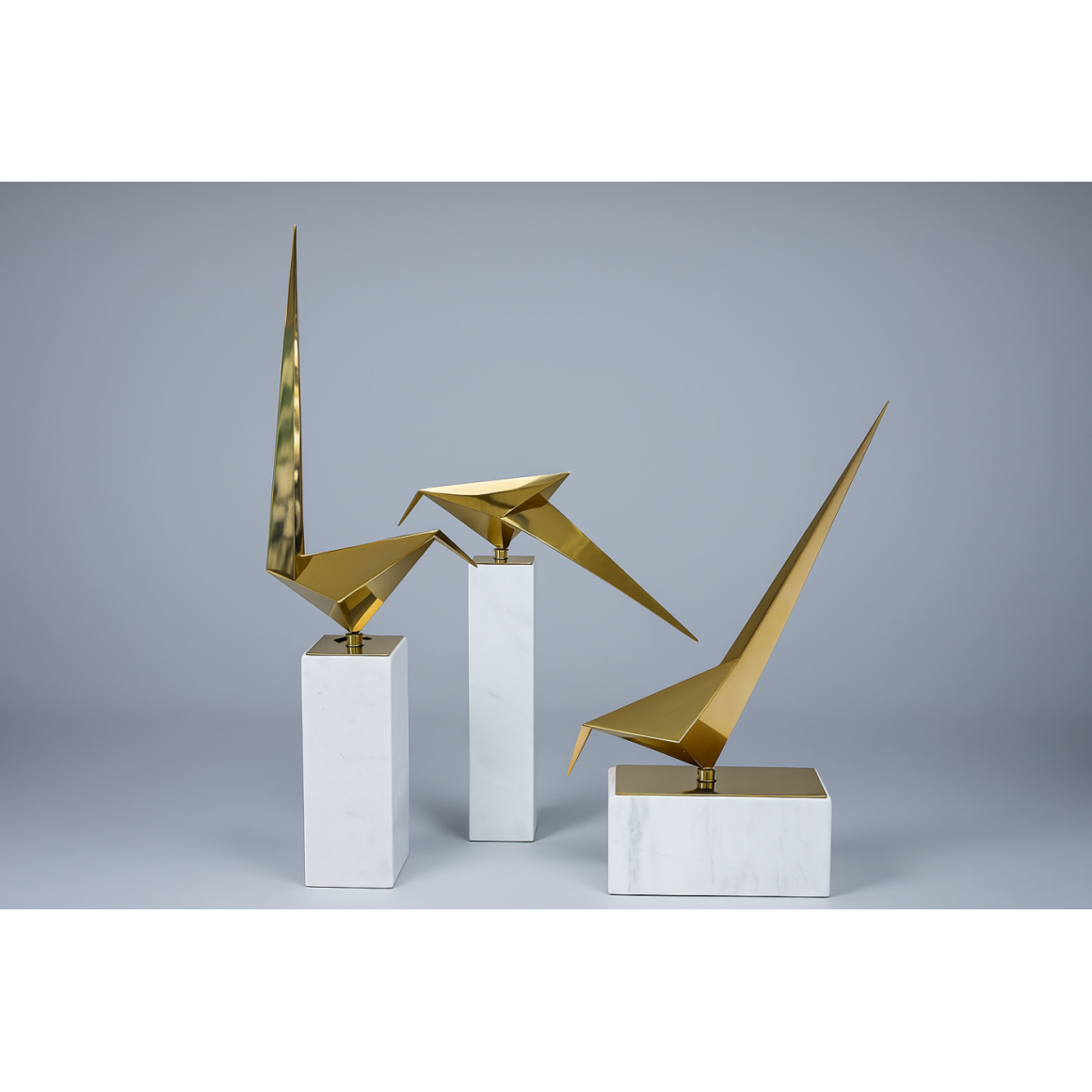 O Origami Decorativo de Cobre e Mármore 33cm é uma peça de arte moderna e sofisticada, ideal para compor ambientes elegantes e contemporâneos. Inspirado na delicadeza do origami japonês, o design une a leveza das formas geométricas com a imponência dos materiais nobres — metal cobreado e base em