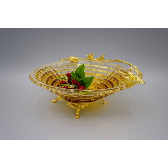 FRUTEIRA DE COBRE E VIDRO AMBAR 40CM
