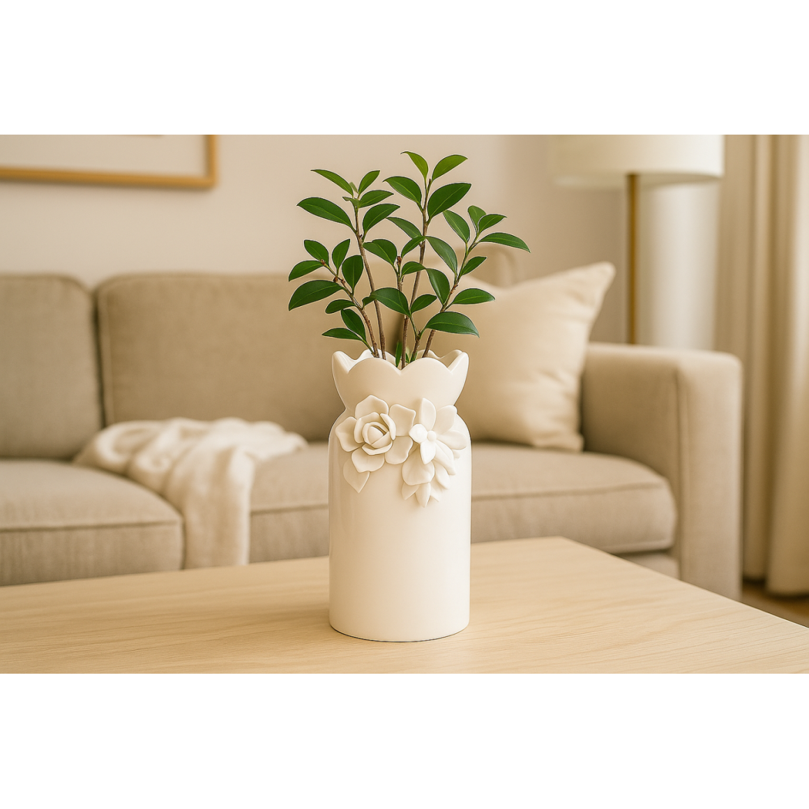 O Vaso de Porcelana Branco com Flores em Relevo é uma peça delicada e sofisticada, perfeita para compor decorações elegantes e sutis. Com acabamento brilhante e detalhes florais aplicados manualmente, o vaso adiciona um toque romântico e refinado a qualquer ambiente.