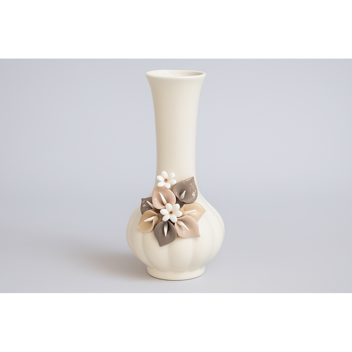 Descrição do Produto — VASO DE PORCELANA BRANCO COM FLORES 7x15CM
