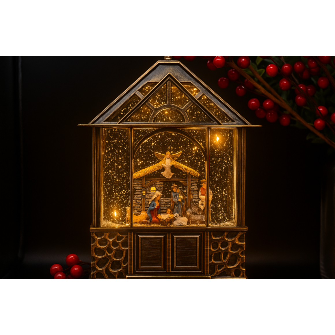 Fabricada com materiais de qualidade e iluminação LED suave, proporciona um brilho acolhedor que valoriza cada detalhe do presépio. Ideal para ser usada em mesas, aparadores ou cantinhos decorativos, cria uma atmosfera natalina especial