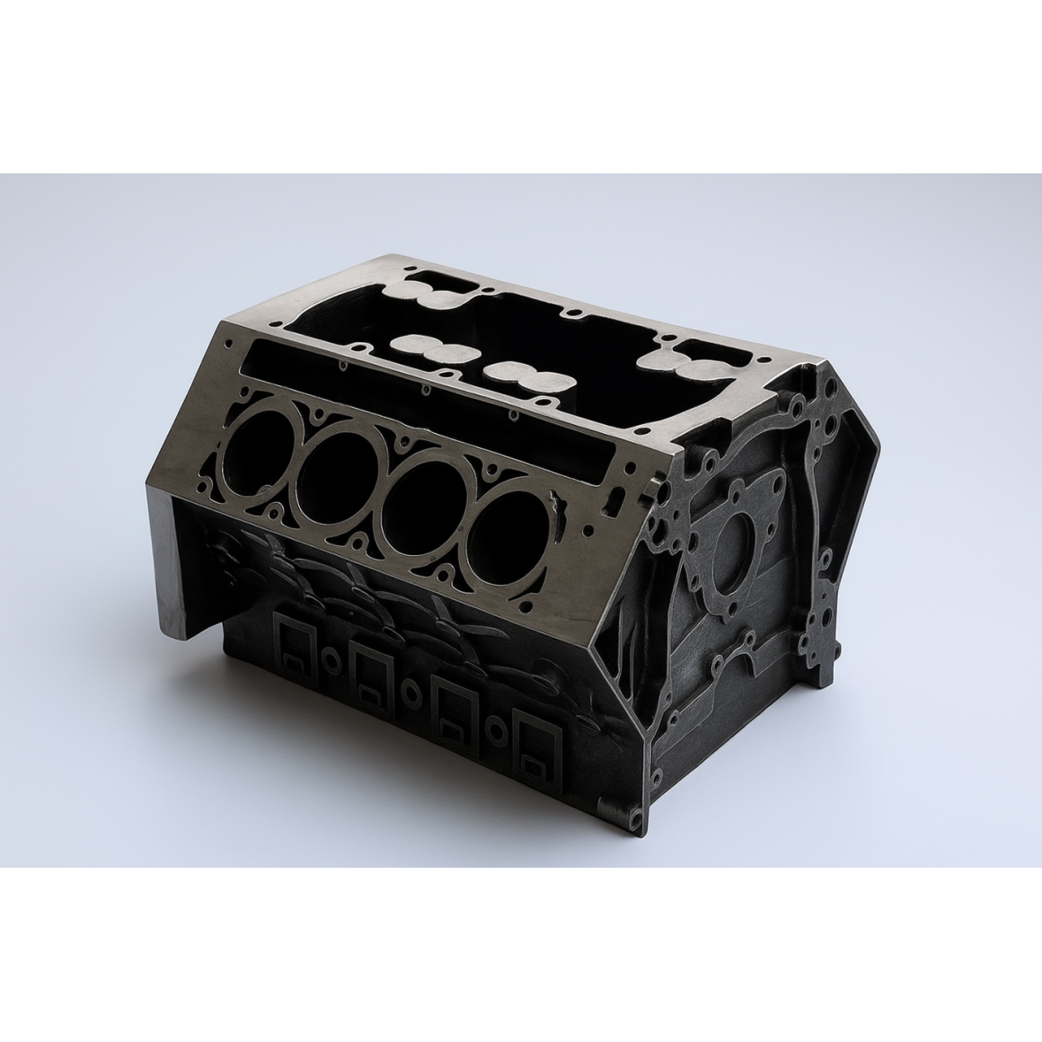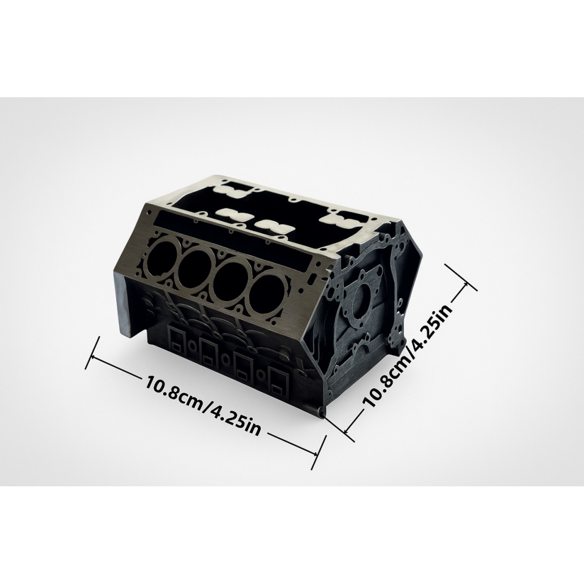 Com 12cm de altura, apresenta detalhes realistas que reproduzem com precisão o visual de um motor V8, destacando o acabamento e o design robusto característico das potentes máquinas automotivas
