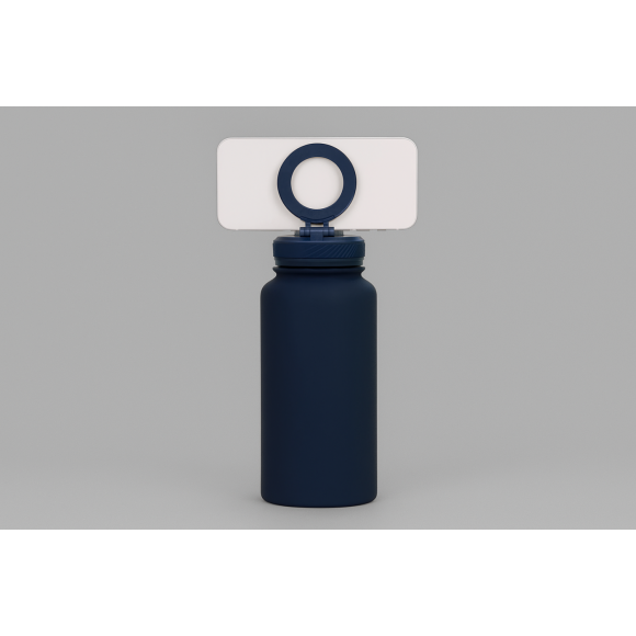 Possui sistema magnético externo que permite fixar a garrafa em superfícies metálicas, trazendo praticidade em ambientes como academias, escritórios, carros, oficinas ou durante atividades ao ar livre